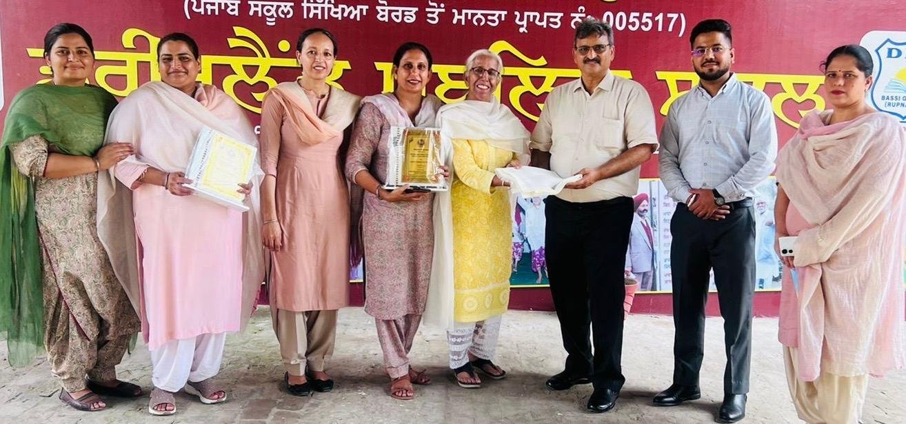 ਕੰਗ ਯਾਦਗਾਰੀ ਸੰਸਥਾਵਾਂ ਬਸੀ ਗੁੱਜਰਾਂ ਵਿਖੇ ਕਿੱਤਾਮੁਖੀ ਭਾਸ਼ਣ ਉਪਰੰਤ ਸੀ ਏ ਸ੍ਰੀ ਰਾਜੀਵ ਕੌਸ਼ਲ ਜੀ ਨੂੰ ਸਨਮਾਨਿਤ ਕੀਤੇ ਜਾਣ ਦਾ ਦ੍ਰਿਸ਼