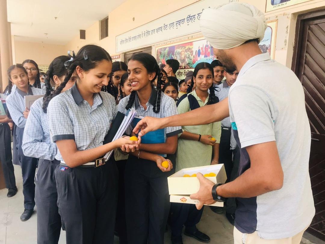 ਕੰਗ ਯਾਦਗਾਰੀ ਸਿੱਖਿਆ-ਸੰਸਥਾ ਬਸੀ ਗੁੱਜਰਾਂ ਦਾ ਸਥਾਪਨਾ ਦਿਵਸ ਮਨਾਏ ਜਾਣ ਸਮੇਂ, ਵਿਦਿਆਰਥੀਆਂ ਨੂੰ ਲੱਡੂ ਵੰਡੇ ਜਾਣ ਦਾ ਦ੍ਰਿਸ਼