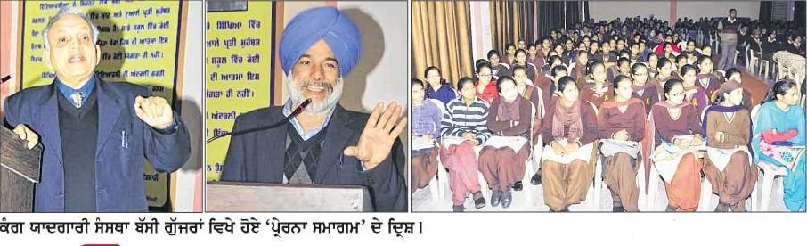 ''igAwn dI pRwpqI leI, sMjIdgI nwl is`iKAw iv`c r`uiJAw ividAwrQI, SihnSwh huMdw hY, rozwnw ausdy igAwn iv`c vwDw huMdw hY, auh rozwnw, Awpxy Aqy tIcy iv`clI dUrI hI nhIˆ Gtwauˆdw sgoˆ mnu`KI duAwly smyq kudrq ausnUM ipAwrdI dulwrdI pRqIq huMdI hY['' ieh ivcwr s: gurdyv isMG kMg mYmorIAl rUrl ieMstIicaUt Pwr krIAr korisz iv`c krwey gey 'pRyrnw-smwgm' dy mu`K vkqw, jvwhr lwl nihrU XUnIvristI nvIˆ id`lI dy, skUl AwP lweIP swieMs iv`c inaUro-bwielojI dy pRoPYsr fw: dIpk Srmw ny pRgt kIqy[ aunHwˆ ies g`l 'qy zor id`qw ik lgwqwr is`Kdy rihx nwl mnu`KI sKSIAq, isPqI bxdI rihMdI hY[ aunHwˆ ividAwrQI jIvn iv`c, Acyq-mn dIAwˆ brkqwˆ dw vrnx kridAwˆ d`isAw ik hr ividAwrQI nUM AwpxI idlcspI dw tIcw imQxw cwhIdw hY Aqy tIcy dI pRwpqI leI vwr vwr Awpxy Acyq-mn nUM sMdyS idMdy rihxw cwhIdw hY, PlsrUp Acyq-mn, sucyq-mn dy mukwbly 30,000 guxw aUrjw nwl ividAwrQIAwˆ dI AgvweI krky, aunHwˆ leI tIcy dI pRwpqI XkInI bxwauˆdw hY[ aunHwˆ hryk nUM jIvn iv`c ivigAwnk idRStIkon Apnwaux 'qy zor idMidAwˆ ikhw ik ivigAwn, jIvn dI Awqmw huMdI hY[ aunHwˆ mnu`KI vrqwA, ivAkqIqv, mn, is`Kx klw, XwddwSq, pVHn klw, Bwvukqw, nIˆd, supny, pVHn-ivDIAwˆ, smyˆ dI sMBwl, iekwgrqw, tweIm tybl Awid iviSAwˆ qoˆ ielwvw idmwZI-aUrjw dI ivAwpkqw Aqy smr`Qw bwry d`isAw[ ies mOky 'qy aunHwˆ AwpxI pRyrk imswl id`qI ik ikvyˆ 3 swlwˆ dI aumr iv`c hoey polIE dOrwn, hoeI l`qwˆ dI ApMgqw dy bwvjUd auh pRvwn cVHy hn, 30 swl qoˆ Koj/AiDAwpn Kyqr nwl juVy hn, 40 kOmIˆ Aqy kOmwˆqrI kwnPrMswˆ iv`c Bwg lY cu`ky hn Aqy 60 qoˆ vDyry lyK Aqy pusqkwˆ ilK cu`ky hn[ aunHwˆ dI imswlI pRwpqI 'qy sroiqAwˆ ny aunHwˆ nUM BrvIˆ dwd id`qI[ ies mOky 'qy aunHwˆ ividAwrQIAwˆ ismrn, ArS mwvI, pRBjoq kYˆQ, mnjIq kOr, jspRIq kOr Aqy AiDAwpkwˆ iv`coˆ mnI Srmw, krndIp isMG Awid dy svwlwˆ dy jvwb id`qy[ ies smwgm nUM sMsQw dy inrdySk svrn isMG BMgU, is`iKAw ivBwg pMjwbI XUnIvristI dy pRo: fw: kuldIp isMG Aqy ipRMsIpl hrdIp isMG kwhloˆ ny sMboDn kIqw[ ies pRogrwm iv`c myjbwn sMsQw dy ividAwrQIAwˆ Aqy stwP mYˆbrwˆ qoˆ ielwvw, lYkcrwr siqMdr isMG, rxbIr kOr, AmnpRIq kOr dI AgvweI iv`c kMinAwˆ srkwrI sI: sY: s: cmkOr swihb dIAwˆ sYkVy ividAwrQxw Swml hoeIAwˆ[ ies mOky 'qy cODrI qIrQ rwm, dlbwg isMG, SRImqI aUSw Srmw, gurpRIq kOr BMgU, ieMdrjIq isMG, ArivMdr isMG Awid Swml sn[