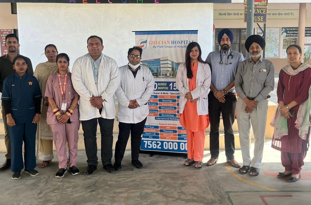 ‘ਮੇਰਾ ਪਿੰਡ 360’ ਕੇਂਦਰ ਵੱਲੋਂ ਪਿੰਡ ਬਸੀ ਗੁੱਜਰਾਂ ਦੀਆਂ ਕੰਗ ਯਾਦਗਾਰੀ ਸਿੱਖਿਆ ਸੰਸਥਾਵਾਂ ਵਿੱਚ ਲਾਏ ਗਏ ਮੈਡੀਕਲ ਕੈਂਪ ਦਾ ਦ੍ਰਿਸ਼ ਅਤੇ ਪ੍ਰਬੰਧਕਾਂ ਨਾਲ ਖੜ੍ਹੇ ਡਾਕਟਰ