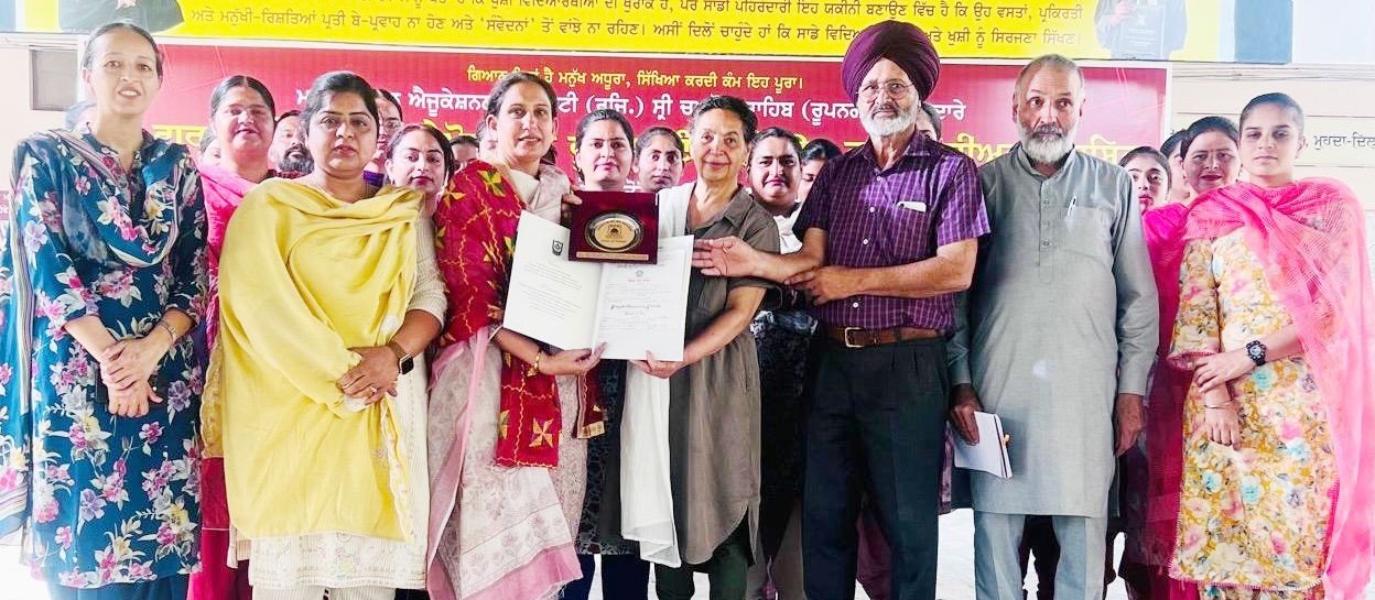 ਅਧਿਆਪਨ ਦੌਰਾਨ ਪੜ੍ਹਦਿਆਂ ਐੱਮ ਏ ਕਰਨ ਵਾਲੀ ਅਧਿਆਪਕਾ ਦਾ ਸਨਮਾਨ