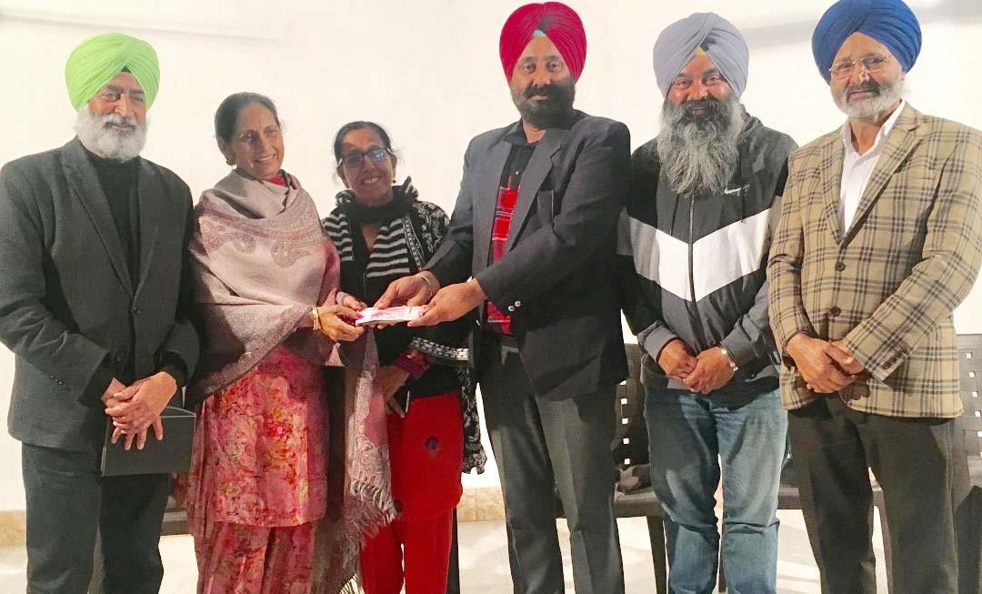 kMg XwdgwrI idhwqI iv`idAk sMsQw bsI gu`jrwˆ ivKy rUbrU smwgm dOrwn, sMsQw dI ivqI shwieqw leI 1 l`K rupey dI rwSI Byt krdw hoieAw pRvwsI joVw SRI bldyv isMG bwT Aqy SRImqI rySm kOr