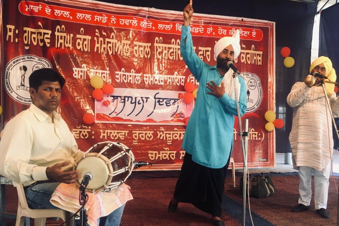 s: gurdyv isMG kMg mYmorIAl rUrl ieMstIicaU Pwr krIAr korisz bsI gu`jrwˆ dw 23vwˆ sQwpnw idvs mnwieAw igAw[ ies mOky 'qy pRis`D lok-gwiek jgsIr jIdw dI AgvweI iv`c ij`Qy lok sMgIq mMflI ig`dVbwhw ny gIq-sMgIq pyS kIqw au`Qy pRbMDkwˆ ny sMsQw dy 23 swlw ieiqhws dw vrnx kIqw[ sMsQw dy bwnI mYˆbrwˆ, stwP mYˆbrwˆ Aqy ividAwrQIAwˆ ny Awpxy AnuBv swˆJy kIqy[ sMgIq mMflI ny v`K v`K smwijk-sm`isAwvwˆ 'qy Aqy mihlw-vrg dy svY-mwx 'qy ADwrq bolIAwˆ, jugnI, ijMdgI nrk bxw id`qI surgwˆ dy lwirAwˆ ny, Gr dw jugwV ihlwieAw cMdry tI vI ny, jVH niSAwˆ ny p`tqI hY nI qMq srIrwˆ 'c, h`k mMgIey brwbr dy Bwvyˆ bUt pwilSwˆ krIey Awid gIq gwauˆidAwˆ sroiqAwˆ qoˆ vwr vwr BrvIˆ dwd leI[ ies gwiekI nUM qUMbI Aqy Folk 'qy swQ gurdws gurUsr Aqy gursyvk ig`dVbwhw ny id`qw[ ies mOky 'qy sMsQw dy bwnIAwˆ iv`coˆ sMsQw dy mOjUdw cyArmYn svrn isMG BMgU ny d`isAw ik 1997 iv`c kyvl 34 ividAwrQIAwˆ nwl, AsQweI-iemwrq iv`c SurU hoeI ies sMsQw kol hux FukvIˆ iemwrq qoˆ ielwvw ADuink swieMs lYbwrtrIAwˆ, bhumMqvI hwl, Gwh, sjwvtI, Cwˆ qy Pu`ldwr Kyf mYdwn, bhumMqvI hwl Awid hn[ sMsQw qoˆ pVHky gey hzwrwˆ ividAwrQI, smwj iv`c AwpxI Asrdwr BUimkw inBwA rhy hn[ aunHwˆ ieh vI d`isAw ik pRqIb`D-AiDAwpn Aqy ividAwrQIAwˆ nUM Biv`K dy ienswn smJky AgvweI krn dy ivcwr nUM smripq, ieh svwrQ-rihq sMsQw ielwky dy hoxhwr pr loVvMd-pirvwrwˆ dy ividAwrQIAwˆ dI skUl iv`c hI nhIˆ sgoˆ aucyrI is`iKAw q`k vI ivqI-shwiek hY[ sMsQw dy pRbMDkI kmytI mYˆbrwˆ iv`coˆ mlkIq isMG rOxI, jsvIr isMG ig`l, kulivMdr isMG Aqy gurpRIq kOr BMgU ny ieh d`sidAwˆ ik sMsQw ny ies SYSn qoˆ kwmrs Aqy Awrts dIAwˆ klwswˆ SurU kIqIAwˆ hn, sMsQw nUM kyˆdrI borf dI mwnqw ADIn ilAwaux dIAwˆ koiSSwˆ jwrI hn, ny sMsQw dy audyS 'qy pihrydwrI krn dw sMklp ilAw[ hor vkqwvwˆ iv`c mwpy-AiDAwpk sMsQw dy pRDwn pRym isMG c`k-loht, SRImqI nirMdr kOr, byAMq kOr, bljIq kOr, mMgl isMG, nirMdr kOr, ipRMsIpl hrdIp isMG kwhloˆ, blivMdr isMG, sMjnw Awid Swml sn[ AKIr iv`c sB nUM l`fU KuAwey gey[ ies mOky 'qy cODrI qIrQ rwm, hrivMdr isMG AOjlw, rwxw rxdIp isMG Awid Swml sn[